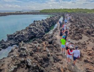 Las Tintoreras, near Isabela Island, is famous for its calm waters and unique lava formations. It offers excellent snorkeling with white-tipped reef sharks, sea turtles, colorful fish, and sea lions. On land, visitors can see marine iguanas, blue-footed boobies, and lava lizards. The easy trails and protected coves make it ideal for wildlife watching and photography. Tintoreras showcases the incredible biodiversity of the Galapagos in a compact, accessible setting.